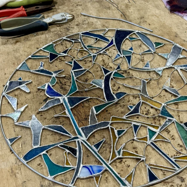 Img 8080Après avoir déménagé dans le nord de la France et quitté l’éducation nationale, elle a trouvé une association dédiée au vitrail. Elle y a passé une année enrichissante, mais a vite compris qu’il lui fallait une formation professionnelle pour maîtriser les techniques nécessaires à la restauration du patrimoine notamment.