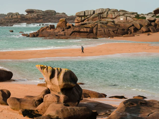 Tout au long de votre chemin, c’est une succession de chaos granitiques aux noms calqués sur leurs formes – la bouteille renversée, le sorcier, la coquille Saint-Jacques – que l’on croise sur le chemin des douaniers qui conduit au phare de Mean Ruz (2 km).