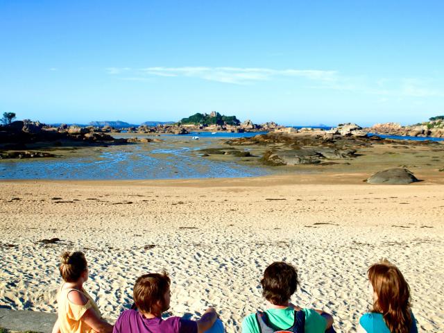 Entre amis devant Costaérès à la plage de Tourouny - Trégastel