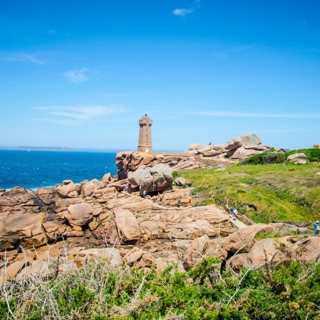 S’il y a des sites qu’il ne faut pas manquer sur la Côte de granit Rose, Ploumanac’h en fait assurément partie ! Avec ses landes et ses célèbres rochers roses, aux formes parfois évocatrices, ainsi que son célèbre phare de Mean Ruz, il vous offre l’occasion de laisser un instant vos vélos de côté pour une petite balade à pied avec vue sur la mer et les Sept Iles.